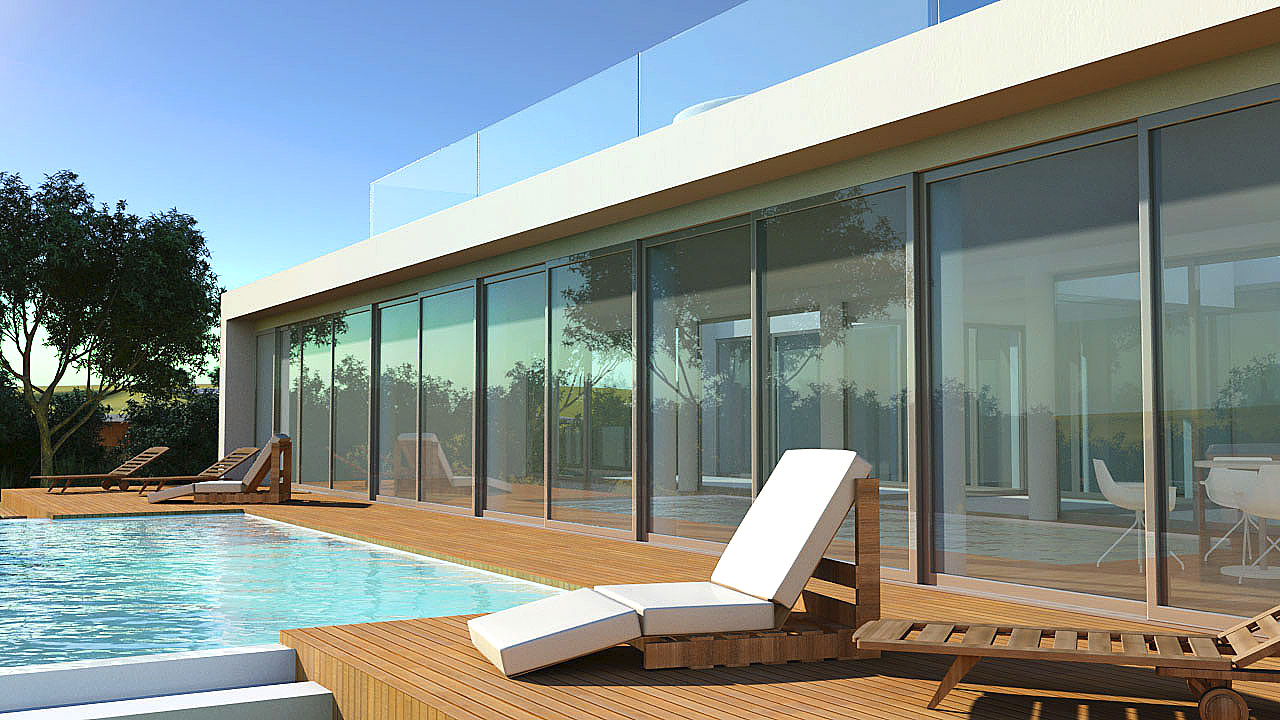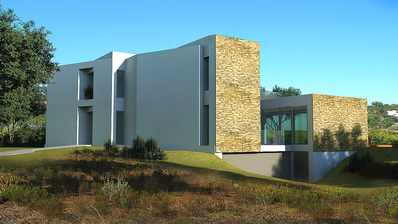 La villa a été conçue de façon à respecter la topographie originelle du terrain et orientée pour que les salons et la piscine soient orientés plein sud, avec vue sur mer.